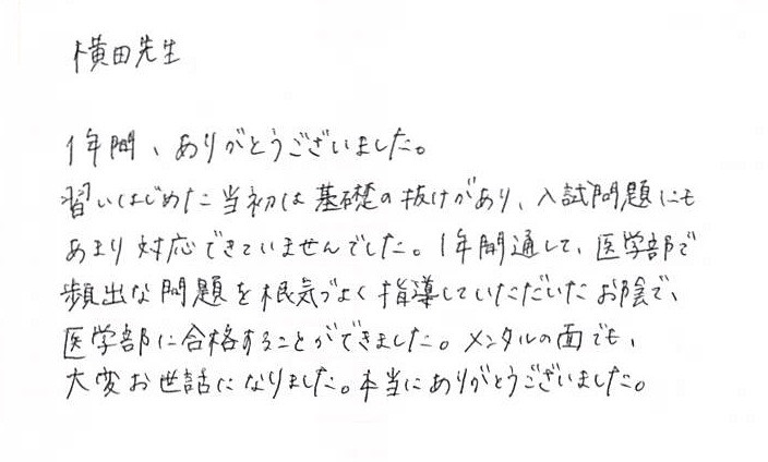 ”医学部合格に必要な相当な努力”を惜しまない人だったので、とても嬉しく思っています。